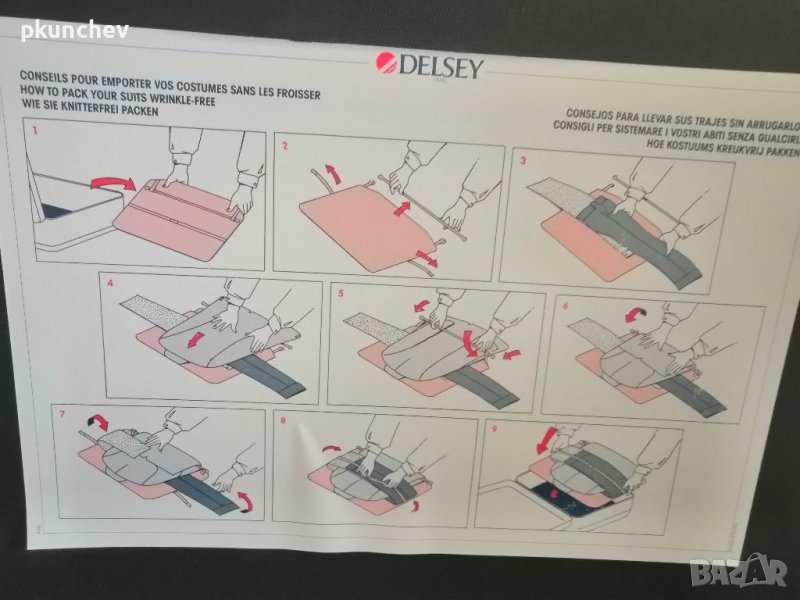 С джобове за дребни вещи и капак с приспособление за сгъване на ризи и панталони.