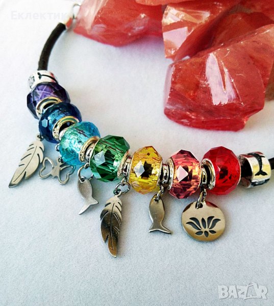 Тази гривна в стил Пандора се състои от фасетирани кристални стъклени