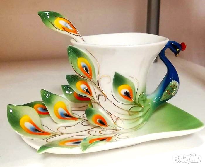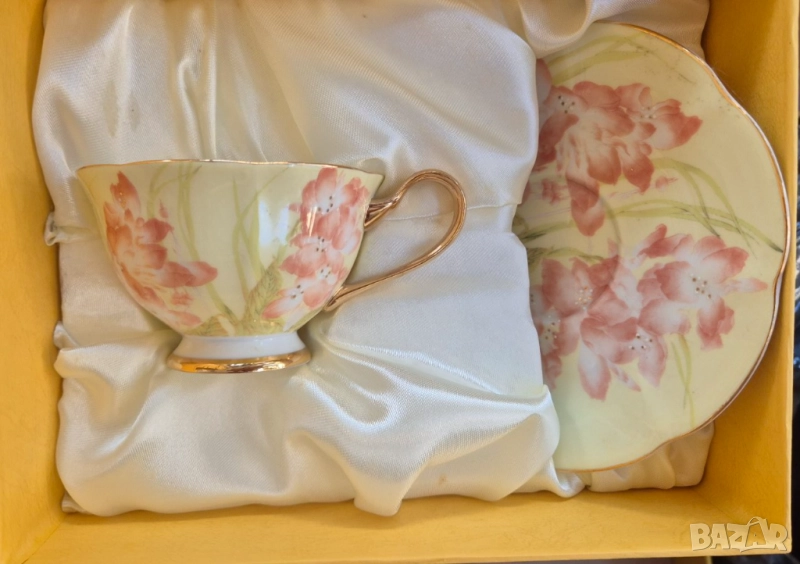 Комплект чаши с чинийка от висококачествен костен порцелан с красиви декорации и злато.
