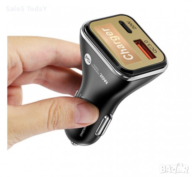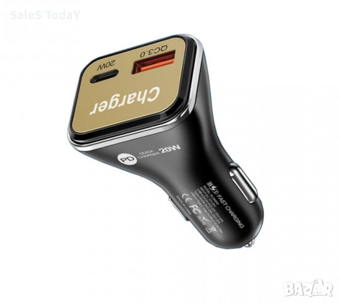 Зарядно устройство за кола 20W с USB порт. 1 x USB Quick Charge 3.0. 1 x TYPE -C Подходящ за смартфони, таблети, GPS навигация, банки за захранване и други акумулаторни електронни устройства. Бял LED светлинен индикатор. Вход: 12V-32V ~ 50-60Hz Изход: 5V-3A / 9V-2.22A / 12V-1.67A Размери: 70 мм х 38 мм Цвят: Черен.