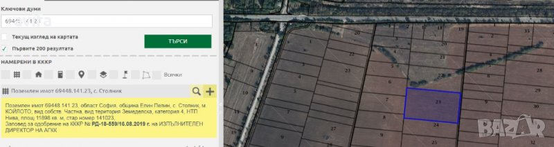 земя с площ от 11899 кв.м и лице 62