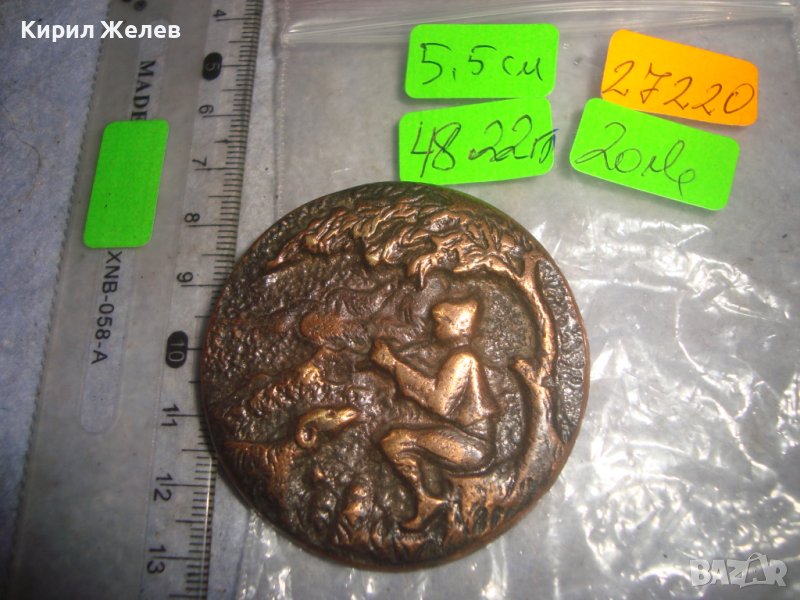 СТАРА МЕДНА РЕЛЕФНА АПЛИКАЦИЯ ПАНО КАРТИНА РЪЧНА МАСИВНА ИЗРАБОТКА 27220