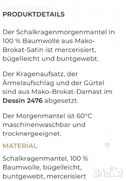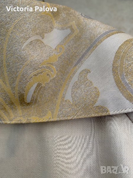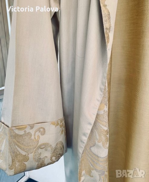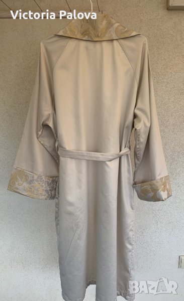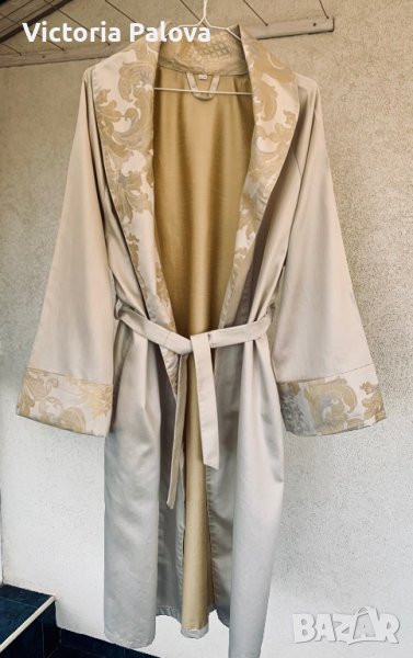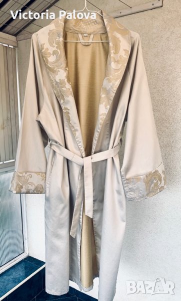 Невероятен скъп халат,лукс.материята е нещо прекрасно,мерсеризиран памучен сатен,което му позволява пране на високи температури.красива яка и маншети от maco-brocade-damask.за нагледност-снимки на спално бельо(само торбата струва 1455 лв,но е безумно красива).ГО-64см,дължина-116см,ръкавът е широк 26см.