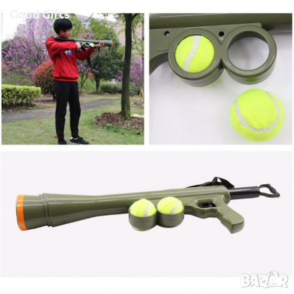 Това е едно практично и уникално приспособление, с което ще може да си поиграете с приятелите, децата, семейството или дори с кучето. Базуката за автоматично изстрелване на тенис топки е създадена за да насърчи вас и вашия домашен любимец да се движите повече и да се забавлявате наравно с това. Базуката може да изхвърля тенис топките на повече от 20 метра, което означава повече тичане за вашето куче. Базуката разполага с пълнител от две тенис топки. Работи изключително лесно. Просто поставяте топките в пълнителя и дърпате спусъка. Базуката изстрелва топката на повече от 20 метра разстояние, а вашето куче хуква да я гони.