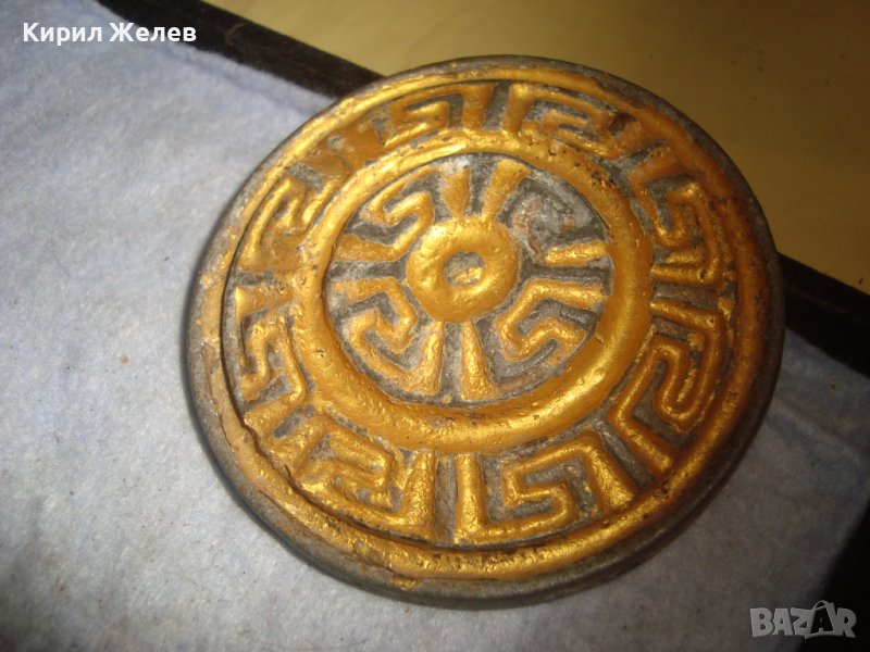 МНОГО СТАРА МАСИВНА ОЛОВНА с ПОЗЛАТА КЛАСИЧЕСКИ ОРНАМЕНТИРАНА АПЛИКАЦИЯ ОБКОВ УКРАСА за ПОРТА 30948 → Обява 38138303