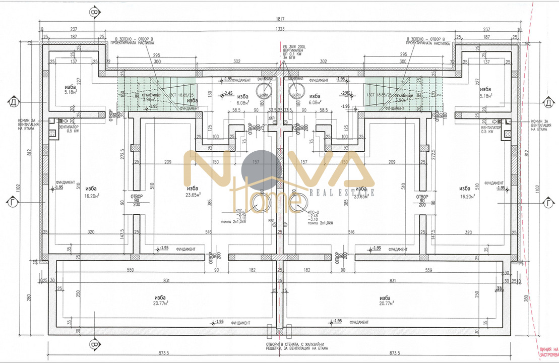 Подземен етаж разделен на няколко помещения, подходящи за кино салан, спа център, фитнес и др.