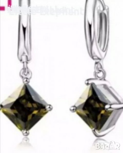 Сребърно колие с ланче кристал,green /Сребърни висящи обеци кристал,green/нови → Обява 38145038