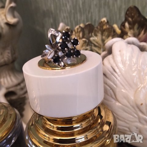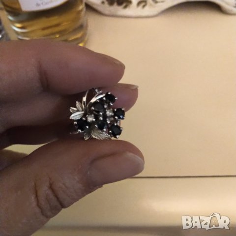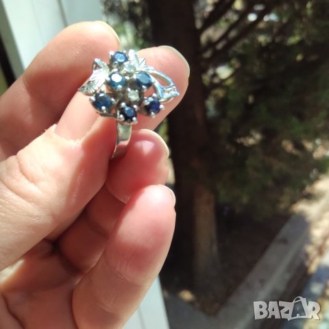 Масивно сребро ,ръчно изработен великолепен лот със висококачествени естествени 2 бели и сини сапфири .За жалост на снимките не успявам да уловя прекрасният син цвят