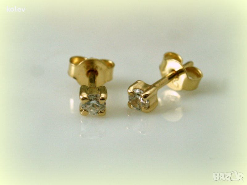Златни обеци, жълто злато с цирконий 3 мм на щифт 0.95 грам