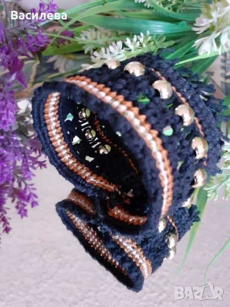 Изцяло ръчна изработка с памучни конци и вплетени мъниста. Обиколка 17 см