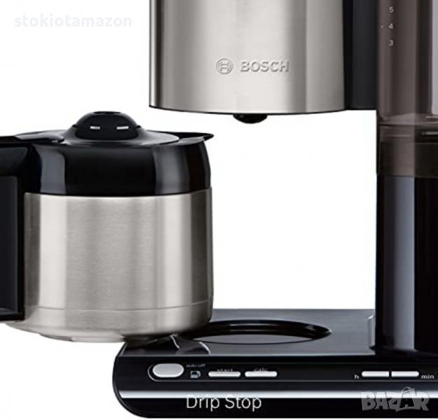Филтърна кафе машина Bosch Styline TKA8A683, сензор за аромат, термокана от неръждаема стомана 1,1 л, за 8-12 чаши, автоматично изключване, система за отстраняване на котлен камък, спиране на капките, подвижен резервоар за вода (1 л), 1100 W, черен
