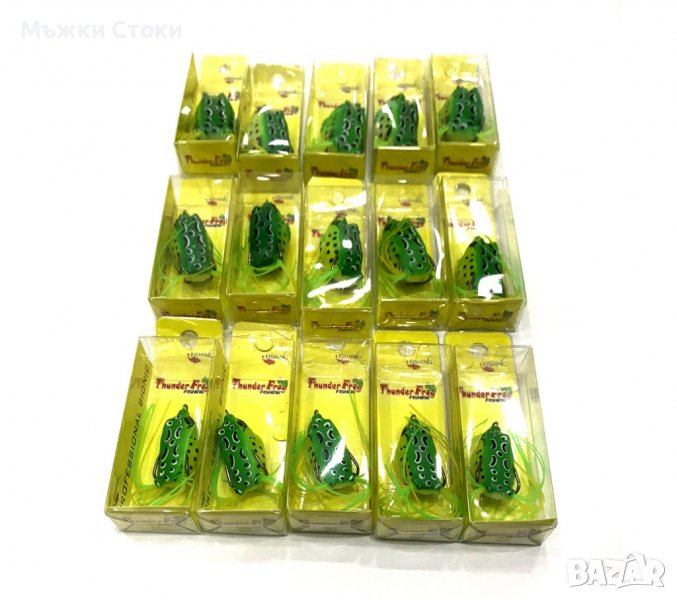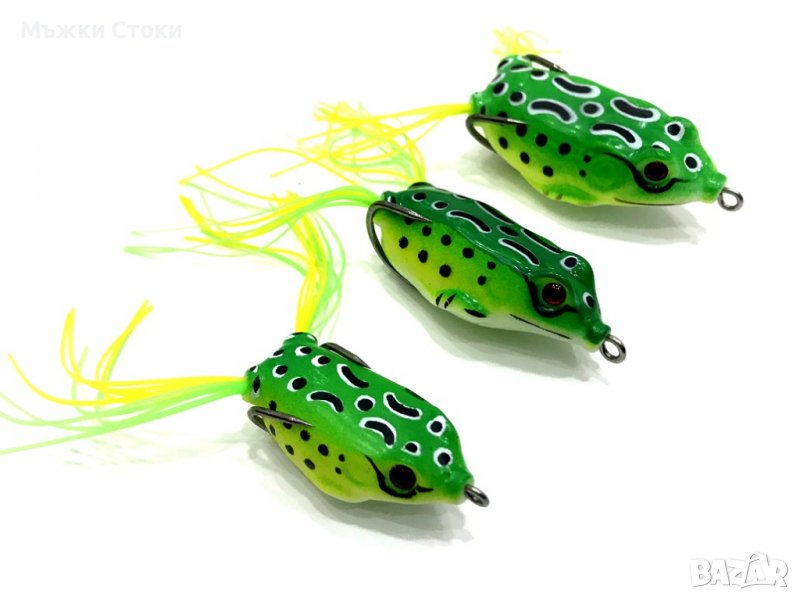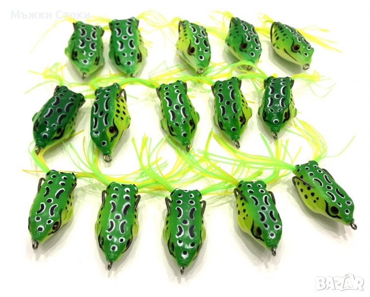 Меки жаби за риболов на хищни риби, с много здрава двойна кука.Телата им са меки и при захапване острието на куките лесно се забиват в устата на хищника.На корема им има оловно топче и то ги държи обърнати на горе, като в действителността.