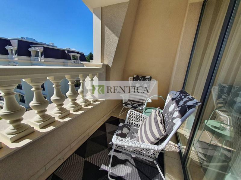 Rentica.bg предлага под наем двустаен просторен, отлично обзаведен апартамент в затворен комплекс в к.к. Св. Св. Константин и Елена. Апартаментът се намира на пети жилищен етаж в нова сграда с отлично поддържани общи части, озеленен вътрешен двор, охрана, басейн. Състои се от коридор, дневен тракт с кухненски бокс, оборудван с необходимата за едно домакинство бяла техника в едно с трапезария, спалня, санитарен възел, тераса. Отдава се дългосрочно.