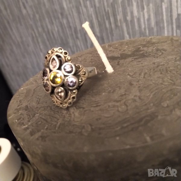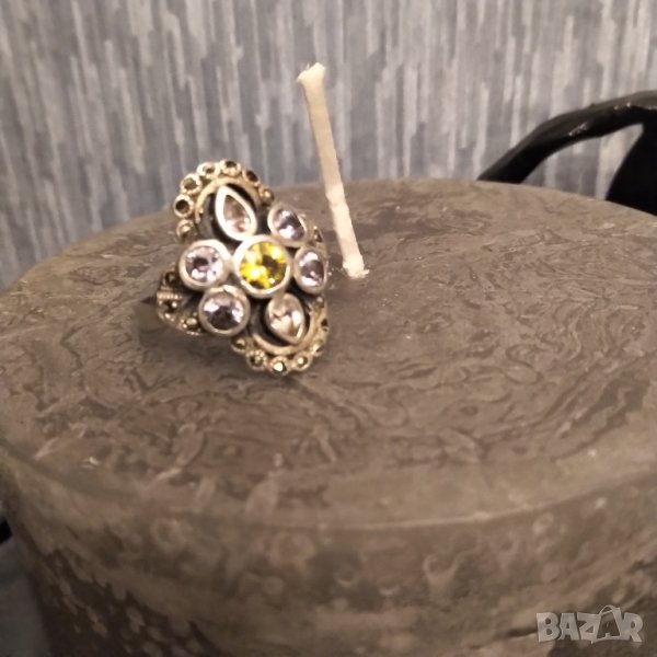 Авторски стар сребърен пръстен ,цитрин ,аметрин и марказити → Обява 38164573