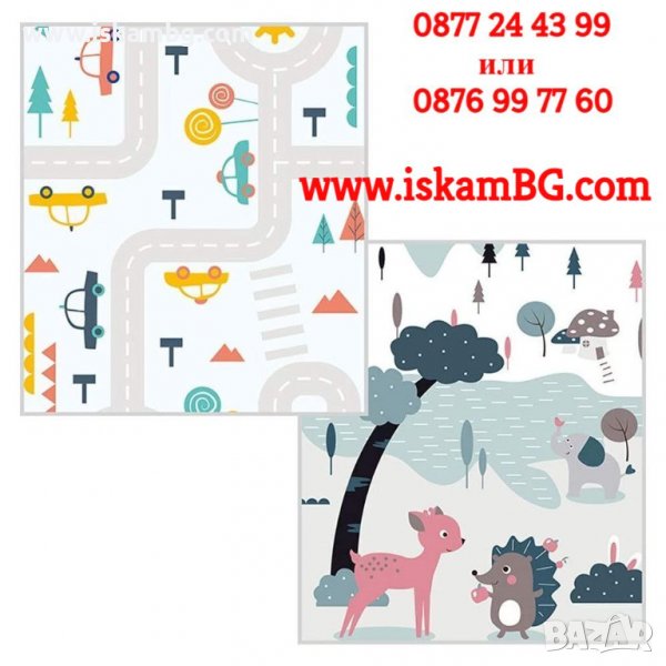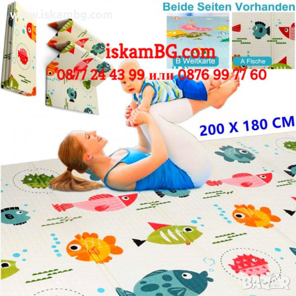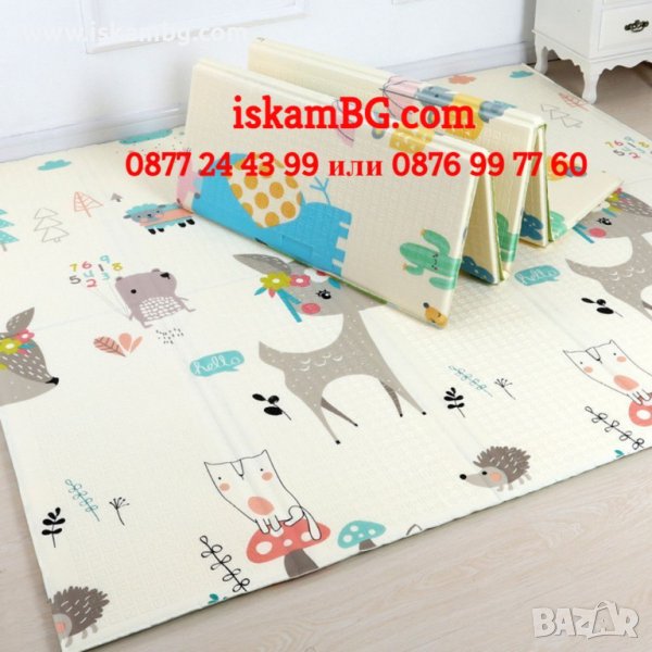 Двустранно, сгъваемо килимче за пълзене и игра от XPE пяна. Материалът, от който е изработено килимчето е нетоксичен и напълзо безопасен, което го прави подходящ за употреба от деца, дори и в най-ранна възраст.