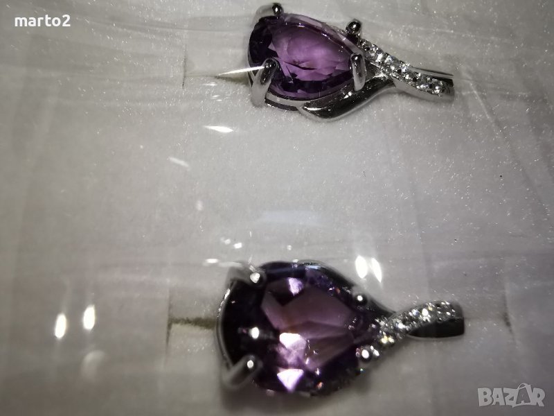 Камъни: Натурален лилав Аметист (Amethyst) и странични камъни Циркони