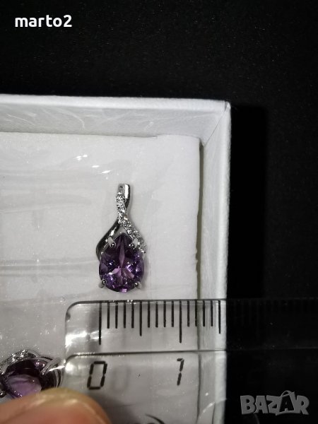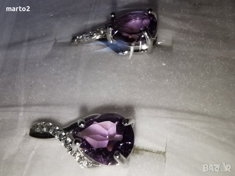 Елегантни Сребърни Обеци 925 с Натурален лилав Аметист (Amethyst) и странични камъни Циркони → Обява 38165620
