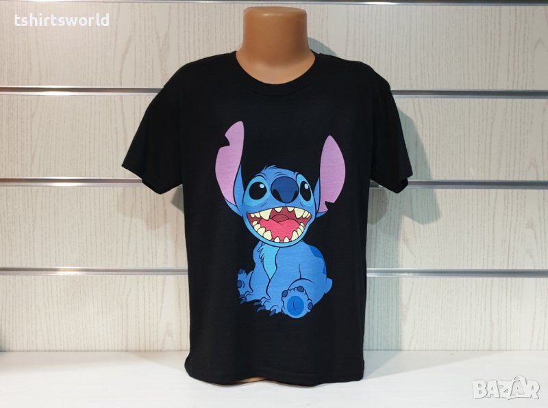 Страхотна нова детска тениска в черен цвят с дигитален печат на героя Стич от Lilo and Stitch Тениската е изработена в България под марката PRINTEX от висококачествен 100% пениран памук, който запазва цялостта на материята и наситеността на цветовете дълго време. С удобна кройка, тениската е свободна и позволява максимален комфорт при носене. Професионално изработен висококачествен дигитален печат, устойчив на пране с години. Тениската може да се пере при температура до 40 градуса. Спокойно можем да гарантираме за качеството на изработката и ярките цветове на дизайна.