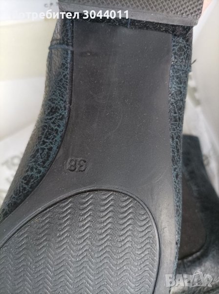 Страхотни нови оригинални боти изработени от мека естествена кожа.Цвета е преливащ в синьо-черен.Размер 38.