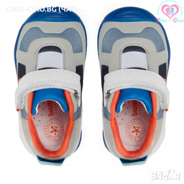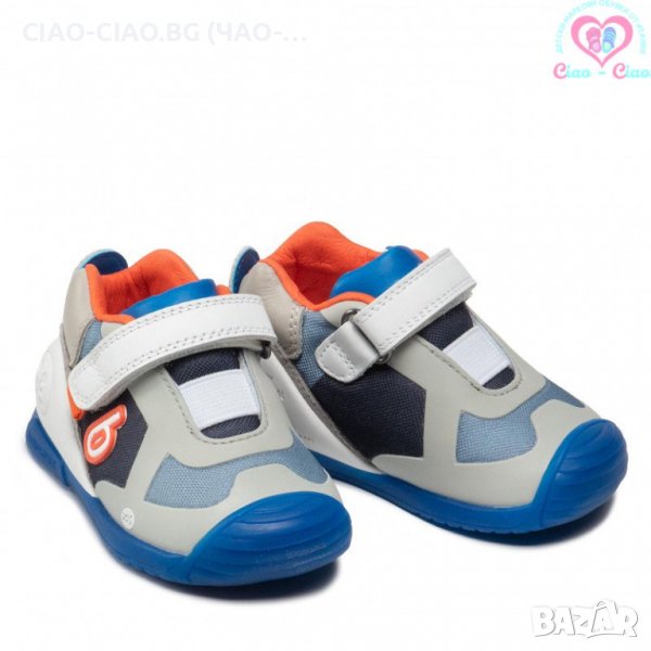 №20, BIOMECANICS / БИОМЕХАНИКС Бебешки обувки за прохождане за момче сиво-сини с оранжеви акцент