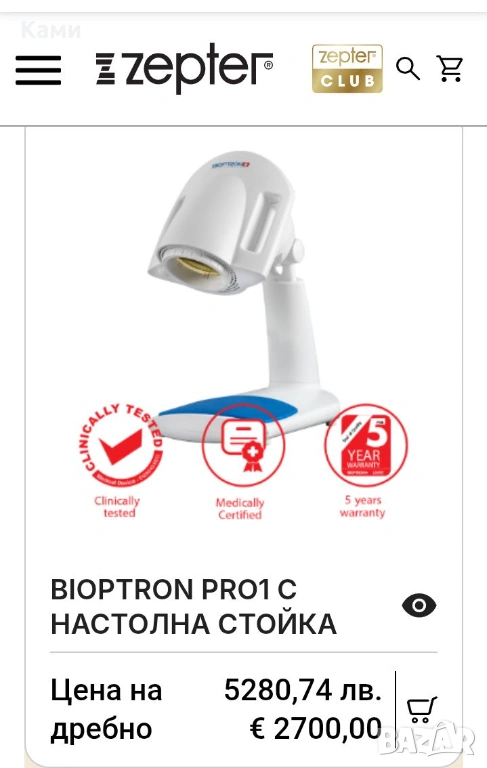 РЕАЛНА ЦЕНА НА СВЕТЛИННАТА ТЕРАПИЯ Биоптрон нов в сайта на Цептер е 2700евро