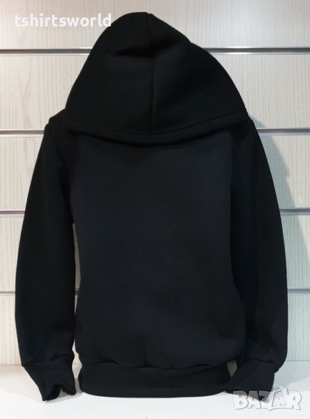 Страхотен нов детски суичър в черен цвят с качулка. Произведен в България под марката PRINTEX от 100% висококачествен памук, което го прави изключително топъл и желан от нашите дългогодишни клиенти. Моделът е подходящ за пролетния и есенно-зимният сезон, има ластични маншети на китките и ханша, запазващи топлината. Меката подплата и свободната кройка го прави изключително удобен за нашите малки клиенти.