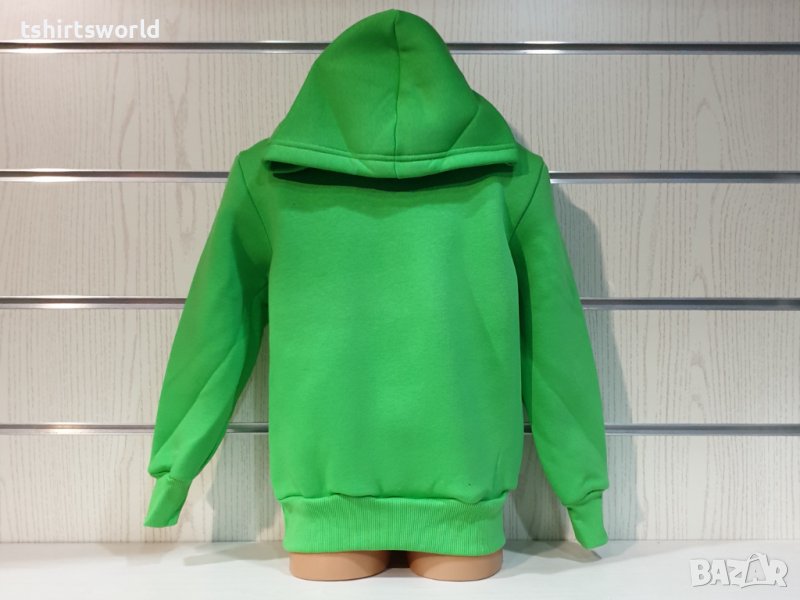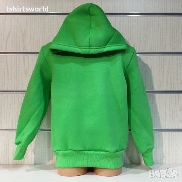 Страхотен нов детски суичър в зелен цвят с качулка. Произведен в България под марката PRINTEX от 100% висококачествен памук, което го прави изключително топъл и желан от нашите дългогодишни клиенти. Моделът е подходящ за пролетния и есенно-зимният сезон, има ластични маншети на китките и ханша, запазващи топлината. Меката подплата и свободната кройка го прави изключително удобен за нашите малки клиенти.