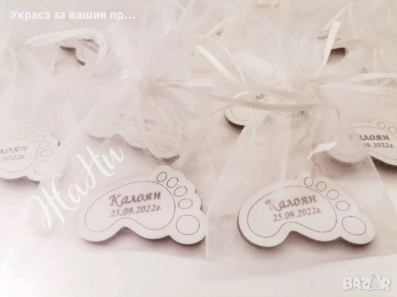 Гравирани магнити крачета за хладилник подаръчета за гостите на прощъпулник, бебешка погача и др. → Обява 38176439