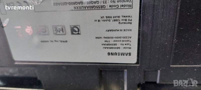борда е гарантирано работещ Демонтиран от телевизор Samsung модел Q55Q60AAU със счупен дисплей CY-QA055HGCV2H. тествана от нашия техник