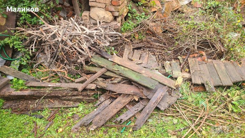 Към тях около кубик и половина стара, подпокривна, суха дървесина за горене - летви и дъски.