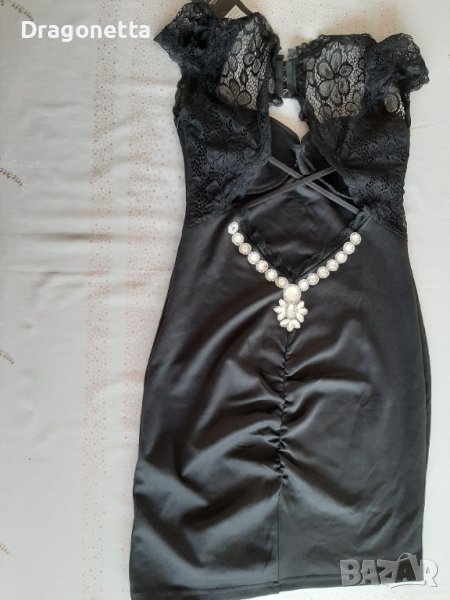 Нова официална дамска къса рокля, М размер, дължина 85см, талия 68см, гр.об.на рокля 76см, еластична,с частично гол гръб,частично- с дантела