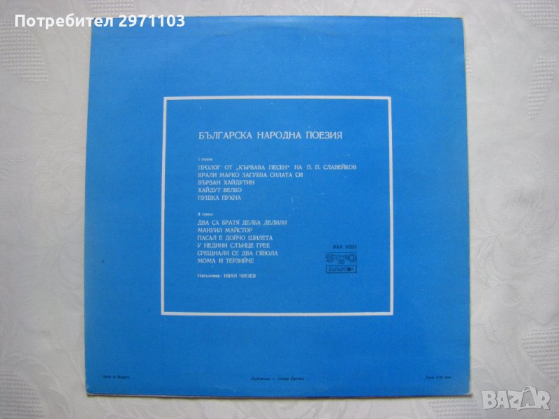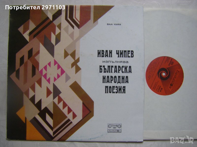 Грамофонна плоча - ВАА 10253 - Българска народна поезия, изпълнява Иван Чипев