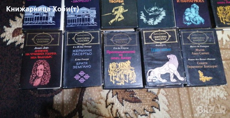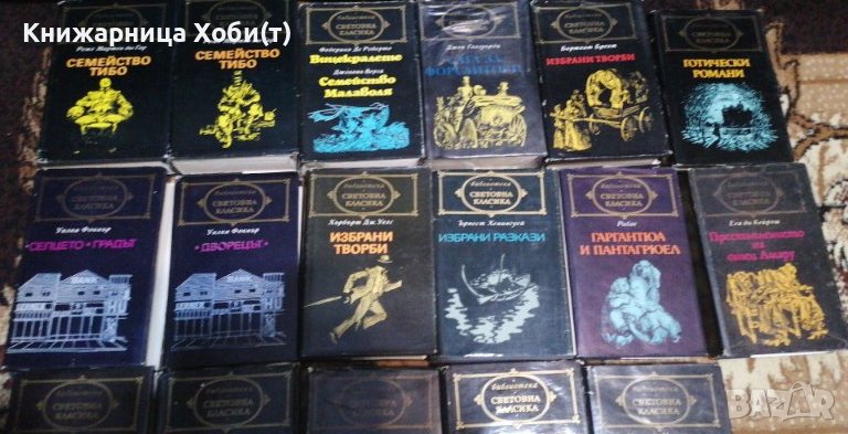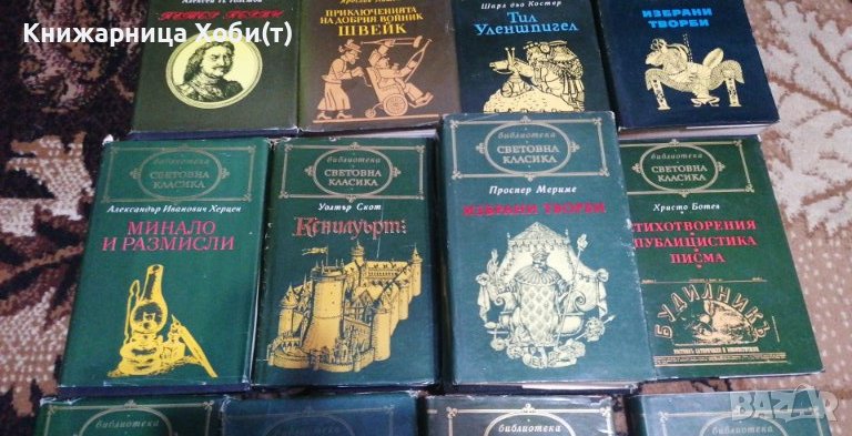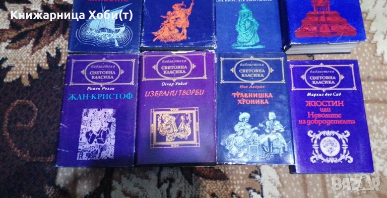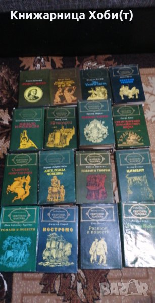 Договаряна на Световна Класика при пакети над 10 книги . Около 60 книги с обложки в много добро или отлично състояние . Повечето са били опаковани във фолио за да не се състаряват или замърсяват . Всички книги идват от семейни библиотеки . Заглавията се виждат много добре от снимките , но има и пуснат списък , както и е възможна допълнителна информация и снимки за всяка книга . . Желанието ми е да останат на по-големи групи макар и при нови собственици .