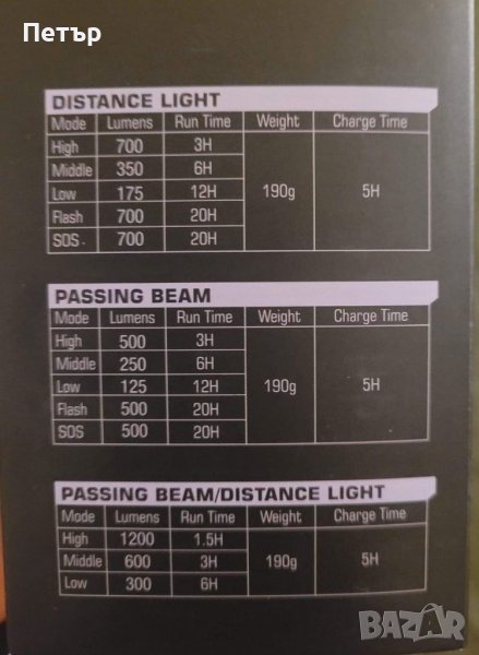 Велофар който който разполага с 6000mAh вградена батерия, 1200 лумена от трите диода (далекобоен + флуд) с които свети час и половина. На точка свети със 700 лумена за 3 часа, флуд диодите са 500 лумена за 3 часа. Има далекобойност 300 метра ANSI, лесна инсталация, 2 модела стойки, поддържа дистанционно с кабел(включено в комплекта тук, иначе се продава отделно). Лед дисплей за процентите на батерията, лесно управление с два отделни бутона, USB Type C за зареждане и свързване на ремоут контрола и USB изход за функция Power Bank. IP65 водоустйчивост и 1.5м устойчивост на падане. Алуминиев корпус, 5 режима на светене - висок, среден, нисък, флаш и SOS. Хубавото е че съчетава далекобойност и да свети на широко според избора на потребителя или и двете едновременно.