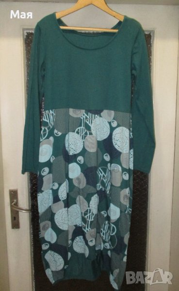 Дамска рокля. Долната част е тип балон. Тънък трикотажен плат.Размери: рамене: 40 см.талия: 45 см. (леко висока талия)ръкав: 61 см.