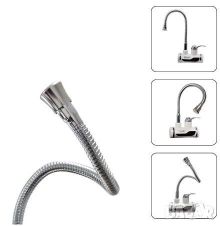 Смесителна електрическа батерия за мигновено затопляне на чешмяна вода с гъвкав чучур (Стенен монтаж)