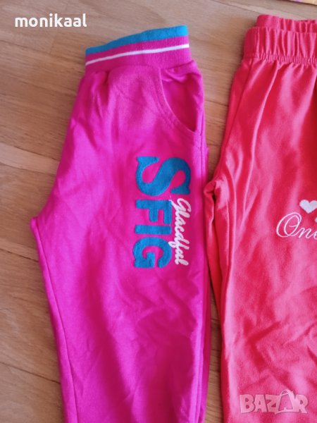 Налични са трите долнища от ляво и цикламеното панталонче в дясно.Цикламеното панталонче е 61см, но може да се носи като по-късно понеже има копче и лента с която да се навият и закопчаят крачолите. Цена от 3лв до 5лв.