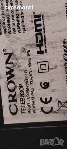 Основна платка -17MB140 for 39 inc DISPLAY VES390UNDA-2D-N12 for Crown 39472FHD борда е гарантирано работещ Демонтиран от телевизор Crown модел 39472FHD със счупен дисплей VES390UNDA-2D-N12 тествана от нашия техник