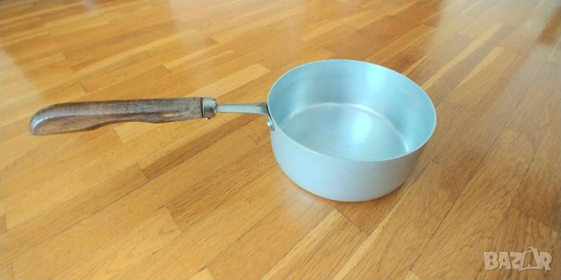 С дървена дръжка. Диаметър 16.5 см. Височина 7 см.