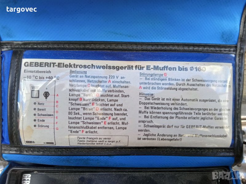 Машина за електрофузионно заваряване лепене на тръби до 160мм , снимка 1 - Други инструменти - 38192159 Машина за електрофузионно заваряване лепене на тръби до 160мм , снимка 2 - Други инструменти - 38192159 Машина за електрофузионно заваряване лепене на тръби до 160мм , снимка 3 - Други инструменти - 38192159 Машина за електрофузионно заваряване лепене на тръби до 160мм , снимка 4 - Други инструменти - 38192159 Машина за електрофузионно заваряване лепене на тръби до 160мм , снимка 5 - Други инструменти - 38192159 Машина за електрофузионно заваряване лепене на тръби до 160мм , снимка 6 - Други инструменти - 38192159 1/6