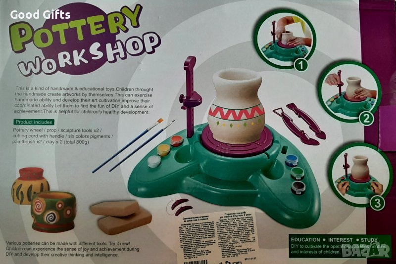Детска машина за глина , детско грънчарско колело, Студио за керамика