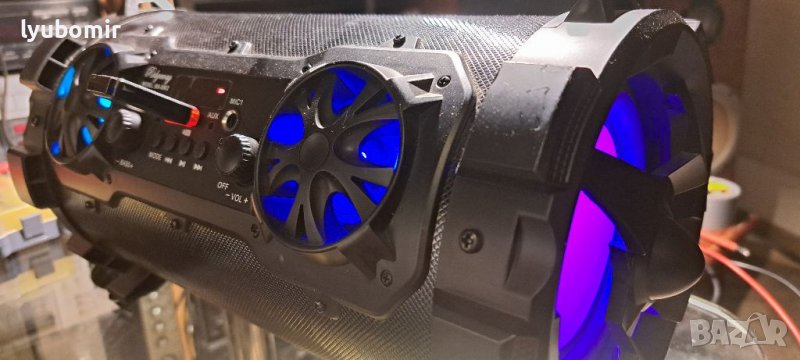 Парти колона. Нова е, всички източници работят.Много децибели и цветни ефекти менящи се всяка секунда.Ефектна и с добро качество.Можете от телефона си да ди джействате :)