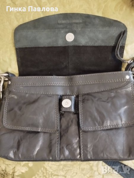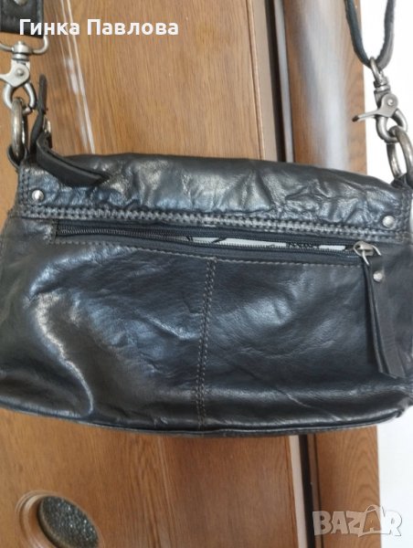 естествена кожа,2 джоба отпред,1 отзад с цип,отвътре с 3 джоба,наситено черна