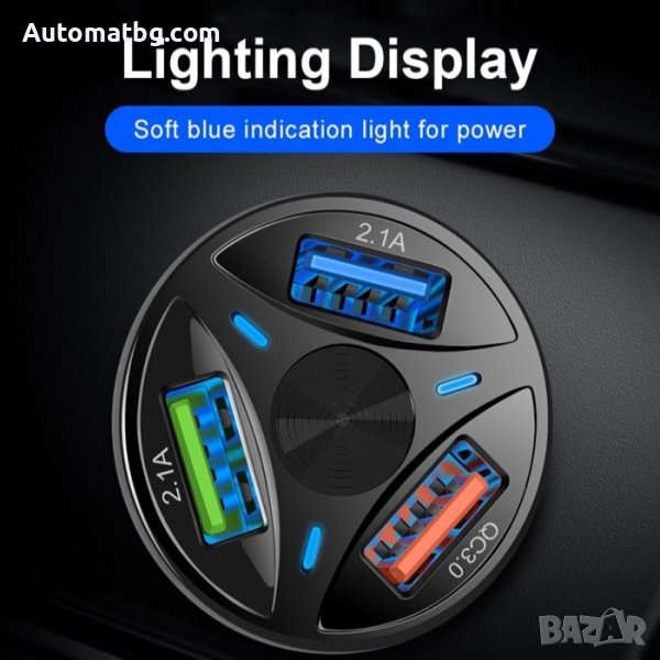 Универсално USB зарядно Automat, Зарядно с три USB порта, 12-24V, Черен.