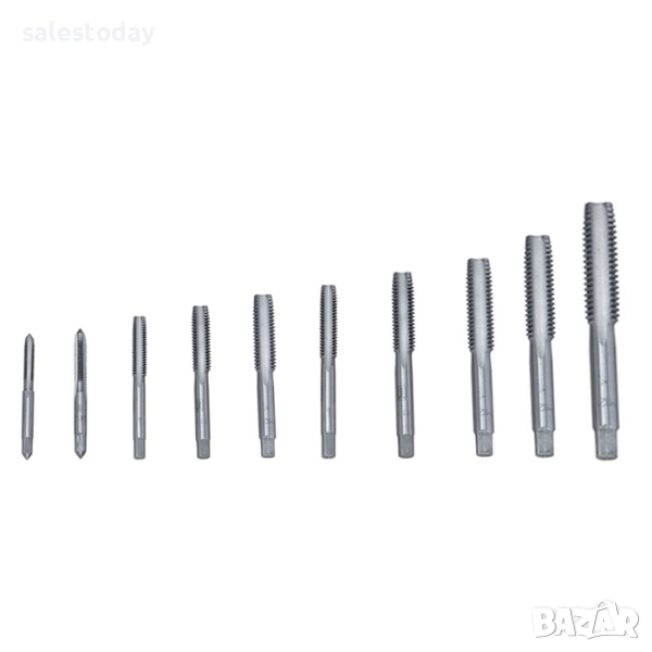 Професионален комплект от 10 броя метчици, предназначени за нарязване на вътрешни резби в метал, пластмаса и други материали. Изработени от висококачествена закалена стомана, инструментите осигуряват прецизност, издръжливост и надеждна работа при всяко приложение.