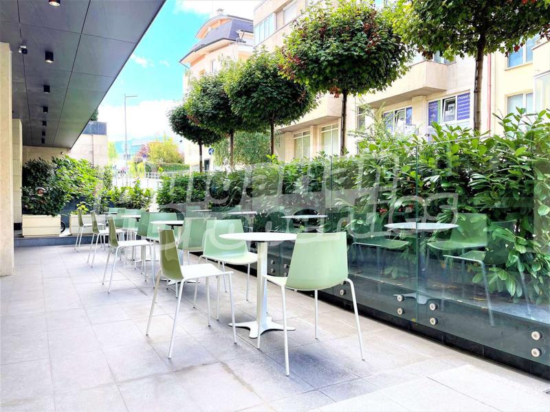 - За обзавеждането на терасата на заведението е заложено на италианската фирма ET AL., като интересното при масите е, че са пригодени с механизъм, който позволява горната им част да се обръща странично за по-лесно складиране, което заема значително по-малко място. И масите и столовете са пригодени за външна употреба и са издръжливи на различни условия.