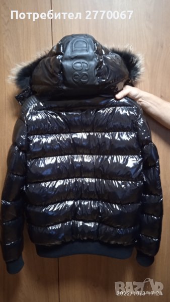 Мъжко черно късо яке,комбинация кожа с полиестер,сваляща качулка,с косъм от енот,есен/зима