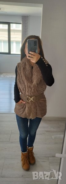 Продавам пухен елек в отлично състояние. С коланче на кръста, който може да се маха. По размер С. Според мен става и за М.