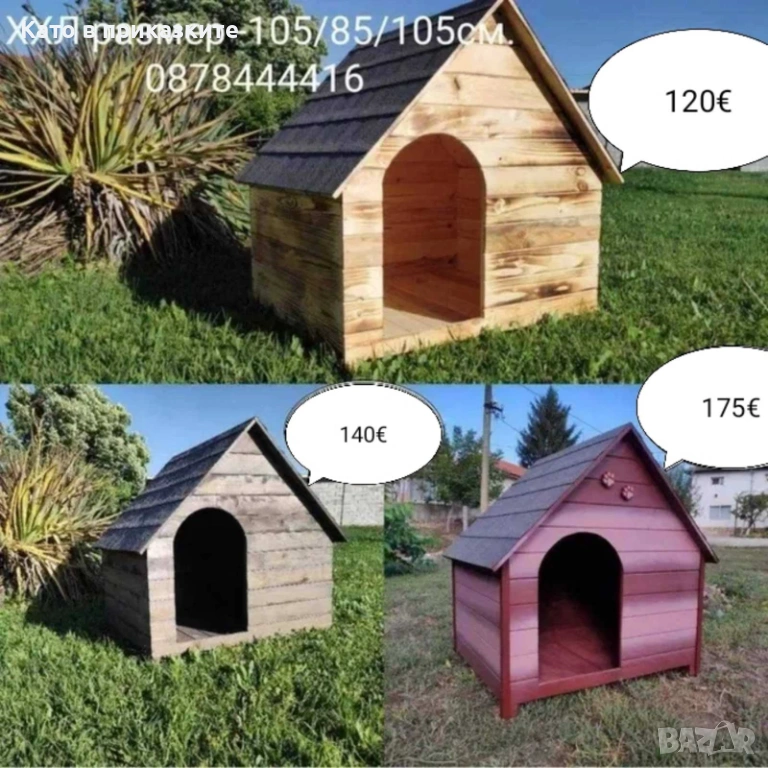 къща за куче. Подходяща е за използване, както на открито в двора, така и в закрити помещения, като например вашата всекидневна, тераса или коридор. Къщите за кyчета са изключително прецизно изработени, като при тяхното конструиране са използвани единствено и само висококачествени материали, което ги прави красиви и в същото време здрави и напълно безопасни за вашите кучета. Дървеният материал използван при изработката на къщата за кучета е от добре обработена иглолистна дървесина. Използваме единствено и само екологични и високоефективни лепила и консумативи, които гарантират за максималната безопасност на вашето куче и безупречната устойчивост на къщата срещу атмосферни влияния и други вредители.Разполага с монтирани крачета, за по-лесно местене и транспортиране, а същевременно по този начин къщата за кучета е по-високо от земята, което допринася за по-добрата топлоизолация.