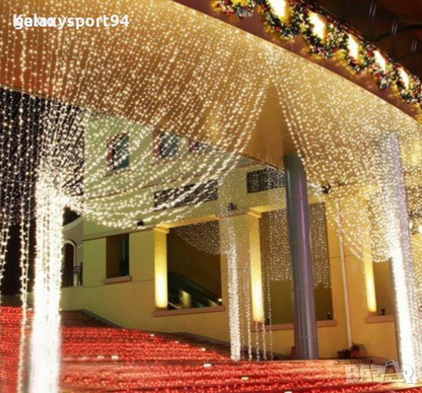 1)LED Завеса 3 х 3 м Студено бяла White 420лампи с Опция Снаждане